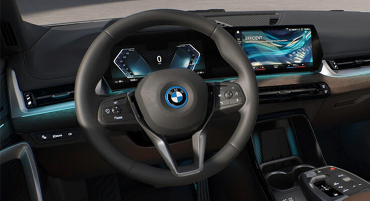 BMW iX1 ka interior premium feel aur high-tech features ke sath fully loaded hai: